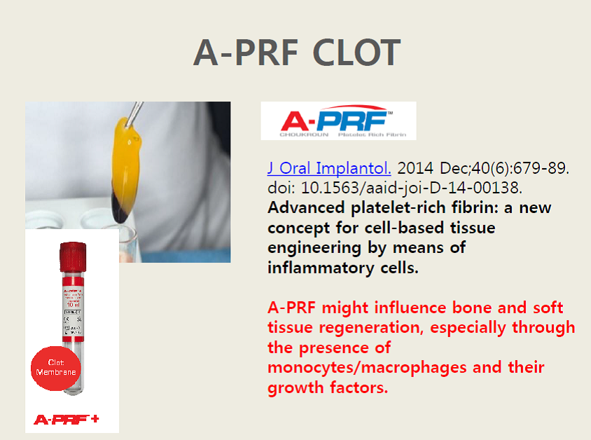 삼육치과병원(신청인: 송웅규)이 연구하고 신청한 PRF 임상 술식이 신의료기술로 인정 되었다.