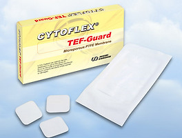 본 제품은 치주질환에 의해 소실된 치조골 및 치주인대등의 치주조직재생을 유동하기 위해 사용하는 막으로서, 상피하방증식을 막고, 치은결합조직을 배제하여 치주인대와 인접골조직으로부터 조직재생공간을 확보하기 위하여 삽입되는 생분해성, 조직재생 유도제품임.
